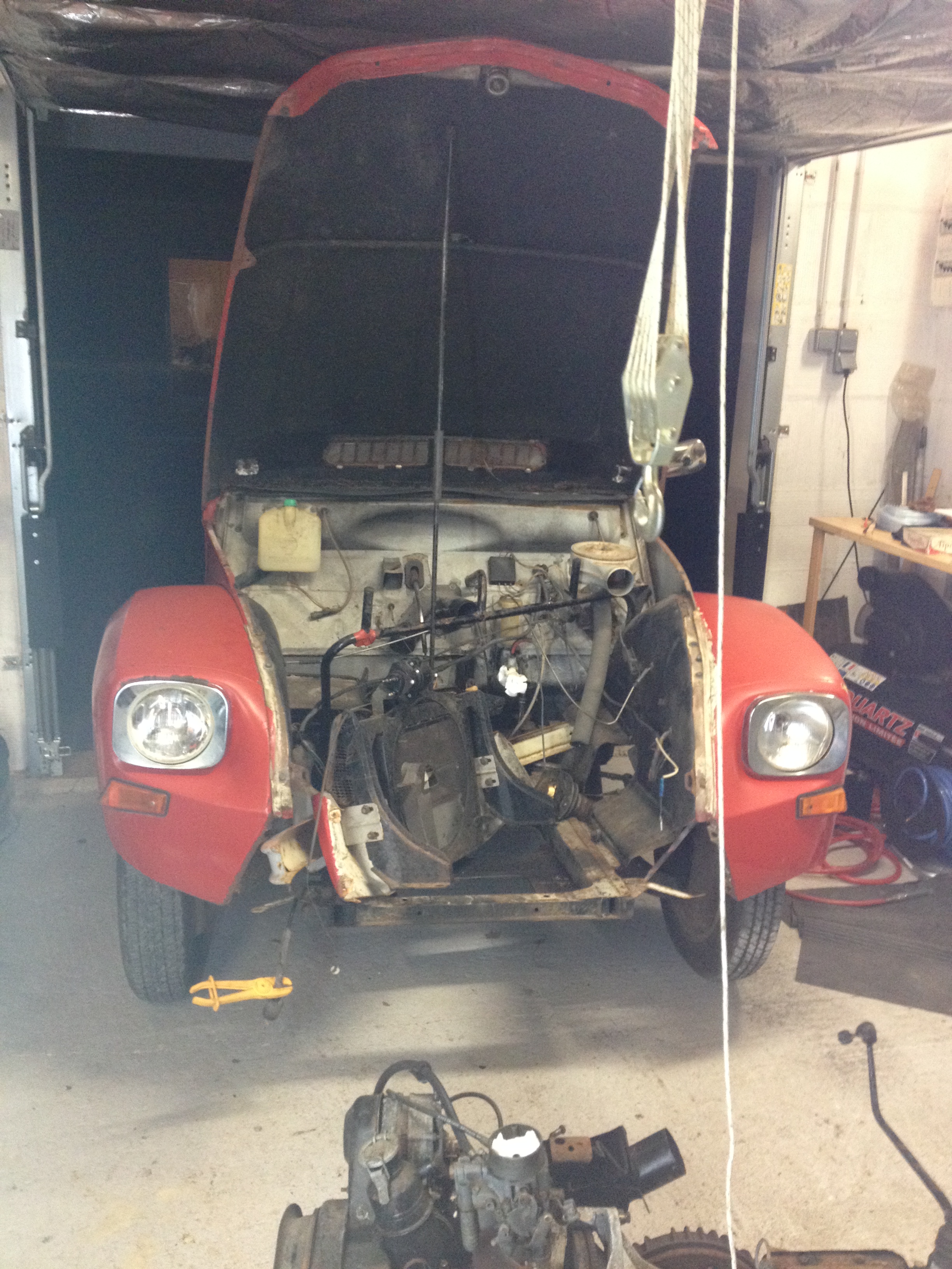 Très vite, mon pote Mathieu me dit : » il faut sortir le moteur et la boite. » ni une, ni deux, dès le lendemain de l’achat, la D6 était démontée partiellement, je ne me doutais pas que je partais sur une restauration aussi longue mais le résultat est correct.